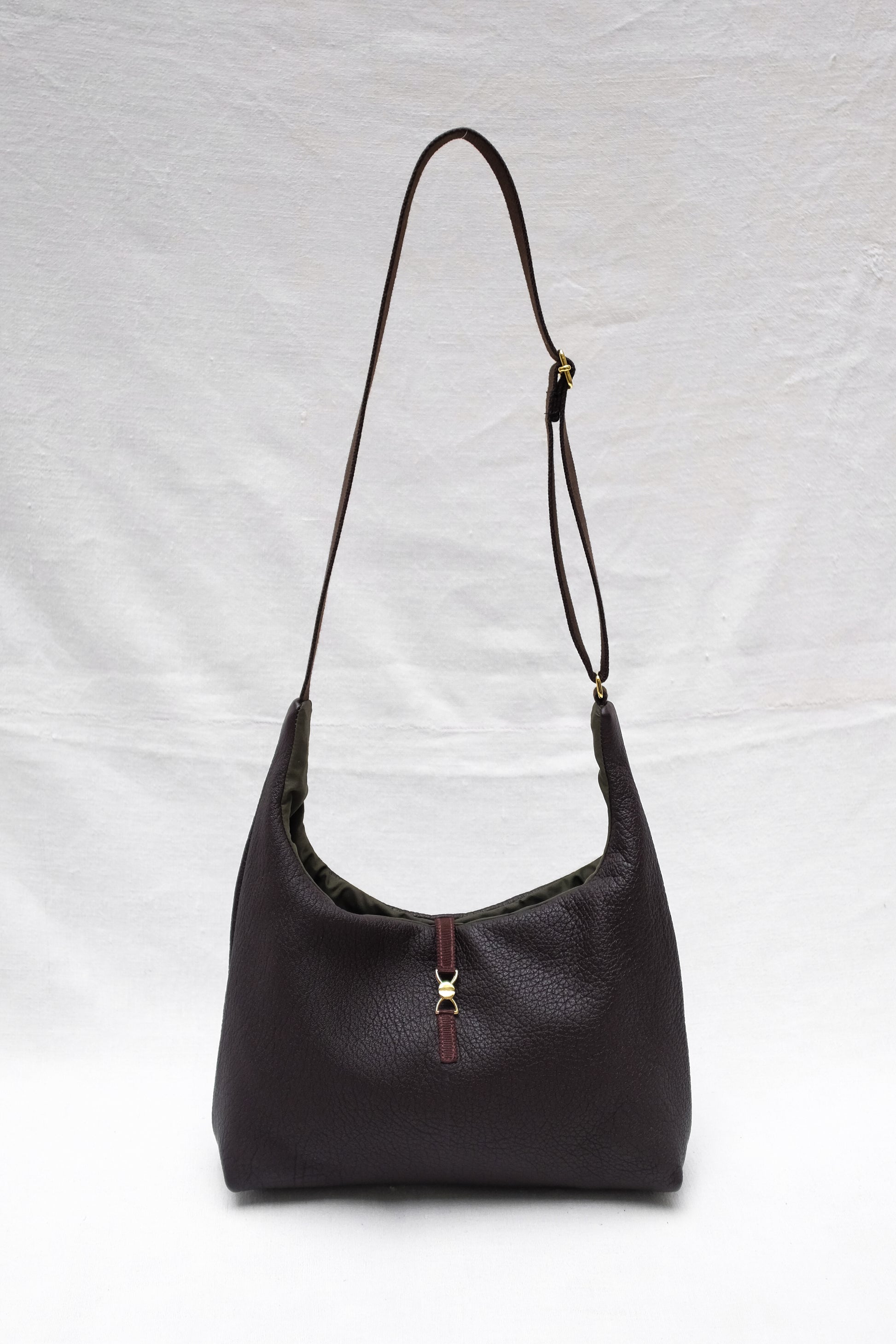 Pour nettoyer votre sac, essuyez-le avec un chiffon doux et sec. Protégez le de l’humidité et des sources de chaleur. Évitez les frottements contre des surfaces rugueuses ainsi que le contact avec des produits chimiques, l’huile et l’eau pour garder son aspect intact. Appliquez un produit nourrissant adapté au cuir pour le protéger et maintenir sa souplesse.